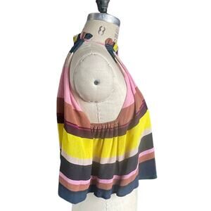 Apiece Apart Olivera Bright Striped Cropped Halter Silk Top Size 2