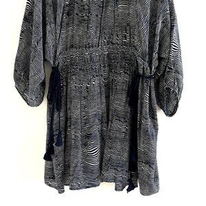 Apiece Apart's 'Puebla Wabi' dress is crafted from soft silk-crepe in the label's eye-catching 'Earth Waves' print. Spliced through the front with a keyhole, this fluid design has an elasticated waist that cinches your figure. It's finished with braided tassels for a flirty, bohemian feel. Only worn once and in excellent condition.