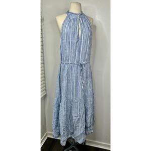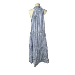 Apiece Apart Size XL Nissi Tiers Dress Seaside Stripe Relaxed Halter-Style Midi Dress