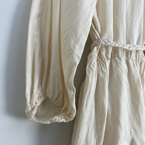 Apiece Apart Womens 4 Sabine Mini Ivory Linen Cotton Dress Long Sleeve Rope Belt