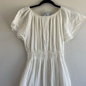 Apiece Apart Women's Sz 2 Smocked Waist Midi Dress Ivory Cottage Core Gauze