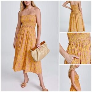 Apiece Apart Porta Smocked Spaghetti Strap Dress Size Med Sunfaded Floral Yellow