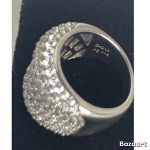 This exquisite silver ring features a wide band adorned with brilliant-cut stones, creating a stunning pavé effect. The bold design and sparkling embellishments make it a perfect statement piece for any occasion.