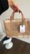 Stylish jute tote bag with 'I Love New York' print. Features red heart and tan handles.