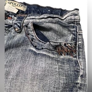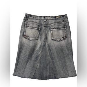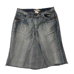 Apollo Jeans stretch midi jean skirt. Pocket detailing in front and back. Some loose thread and missing sequins as shown in photo. Otherwise in great used condition l! Size 17/18.