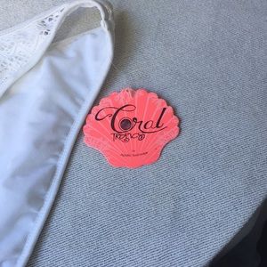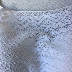 White fully lined bikini. Lace/crochet like pattern. High neck with padded bra. Never worn