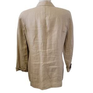 Vintage Apostrophe 100% Pure Linen 3 Button Front Tan Oversized Blazer Jacket Natural Fibers.