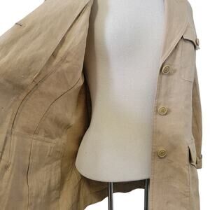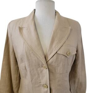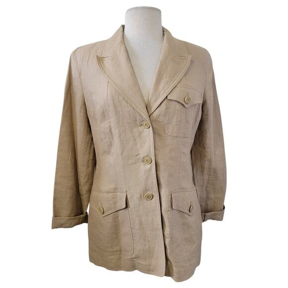 Vintage Apostrophe 100% Pure Linen 3 Button Front Tan Oversized Blazer Jacket Natural Fibers.