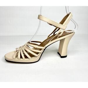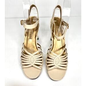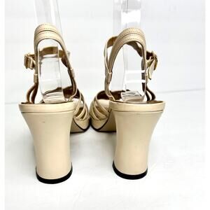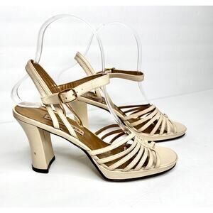 Apostrophe 1980's Style Vintage Cream Platform Strappy Leather Heel Sandal