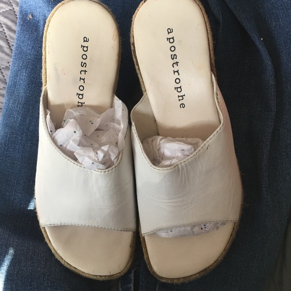 White “4” slip on sandals , brand new been in the closet haven’t used them due to surgery . Good condition very nice for a dress or dressy pants .