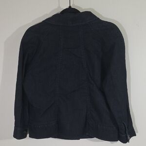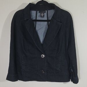 The Apostrophe black blazer offers a sophisticated tailored silhouette with a classic notched lapel, ideal for professional settings. Its minimalist design and solid black color make it a versatile addition to any wardrobe, ensuring a polished and refined appearance.
