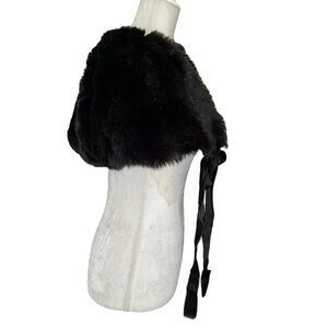 Gorgeous Apostrophe Black Faux Fur Tie Closure Bow Detail Shawl Stole Wrap Cape