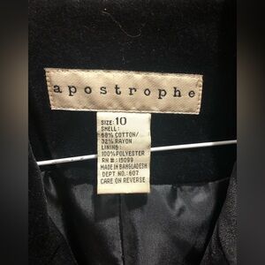 Apostrophe Black Velvet Peacoat Blazer Sz 10
