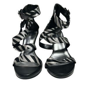 Apostrophe Black and White Zebra Print Strappy Heels Size 9.5