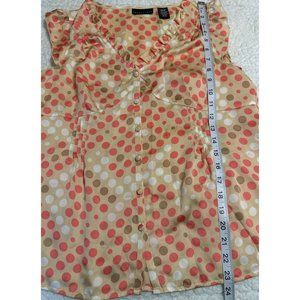 Apostrophe Blouse Short Sleeve Women's Orange White Beige Polka Dots Size M