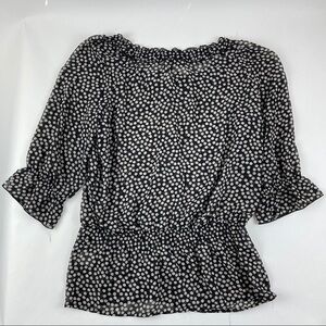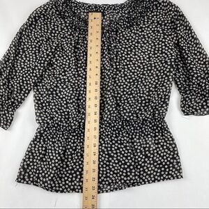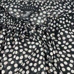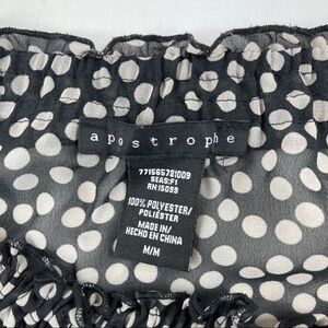 Apostrophe Blouse Womens Medium Black White Polka Dot Cinched Waist Lightweight