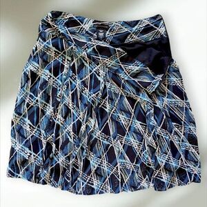 Apostrophe Blue & Black Chiffon Fully Lined Below Knee Midi Skirt Womens 14 EUC