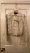 This jacket is a light tan or Cream color with an off-white brocade floral pattern.