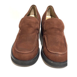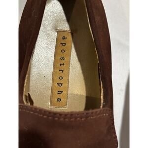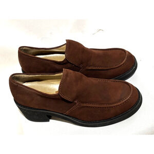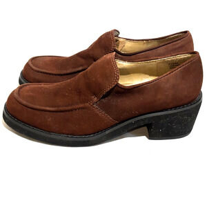 Apostrophe Brown 2” chunky heel Brown Suede Loafers Women’s Sz 6.5 career grunge