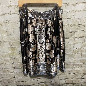 Apostrophe Womens Size 12 Brown Beige Side Zip Floral A Line Skirt in excellent used condition. No stains, tears or rips.