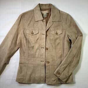Apostrophe Genuine Suede Tan Leather Jacket Size 12 Classic Button Front Coat