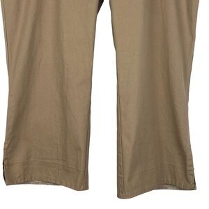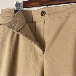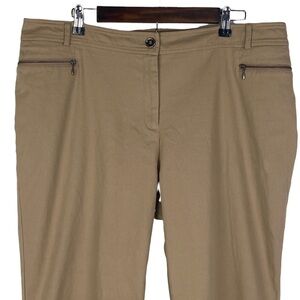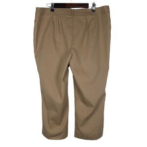Apostrophe Women's 16W Tan High Rise Zippered Front Pockets Capris. Side hem vents. Hem has been let out and have been hand sewn (see last pictures). Great Condition. No rips, flaws, or stains. Smoke free home.