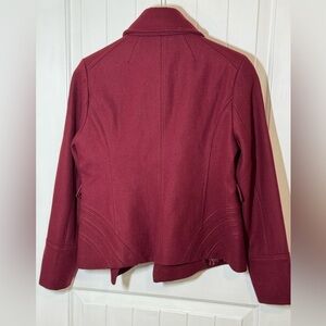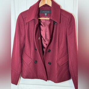 This peacoat is in excellent condition and the color is to die for. It’s a rich maroon color it was hard to capture in photos. Size S. This jacket has some weight to it!