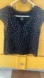 This beautiful top has so much flare! The V neck is very pretty with lace! The stitching in the front adds so much character and of course the dots! You gotta love the dots! This top is double layered sheer polyester. Very soft ! Oh and it has a zipper up the left side of the blouse! In excellent condition!