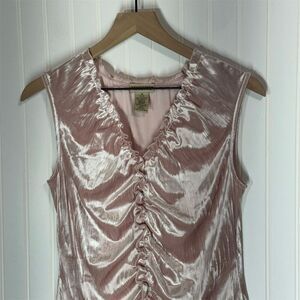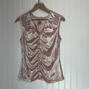 Apostrophe Pink Velvet Ruched Tank Top M Sleeveless Stretch Coquette Y2K Glam