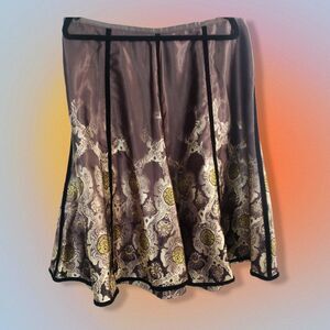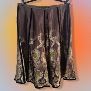 This beautiful skirt is100% Polyester. It is Pre-owned in Great Condition.