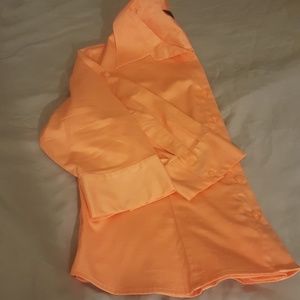 Apostrophe Stretch, creamsickle orange blouse. 3/4 sleeves, button front, pleated. Worn once. Cotton/spandex. Smoke free and pet free home.