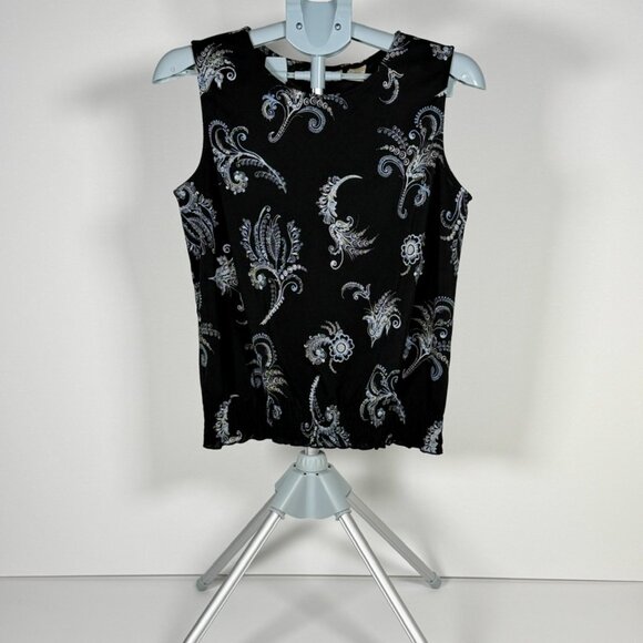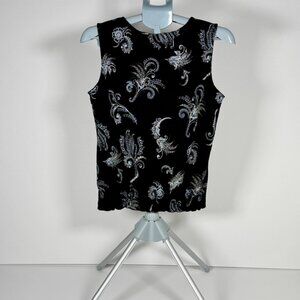 Apostrophe Strech's sleeveless top is a great choice for a night out! It features a stylish black color with a lovely white and blue design, in a light, breathable fabric that feels great to wear. Plus, the elastic waistband ensures a comfortable, flattering fit that you'll love!