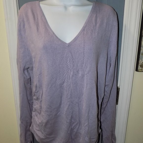Apostrophe Stretch Purple V-neck Sweater Ties at Sides Size XL (18) Women's EUC