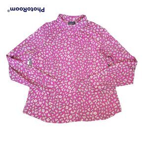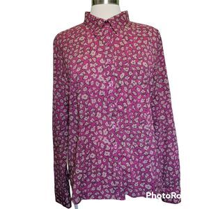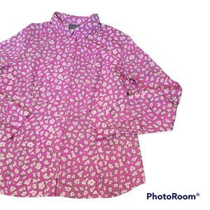 Apostrophe Stretch Vibrant Pink Floral Button Down Top - L