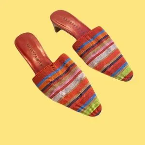 Red/multicolor striped mules
