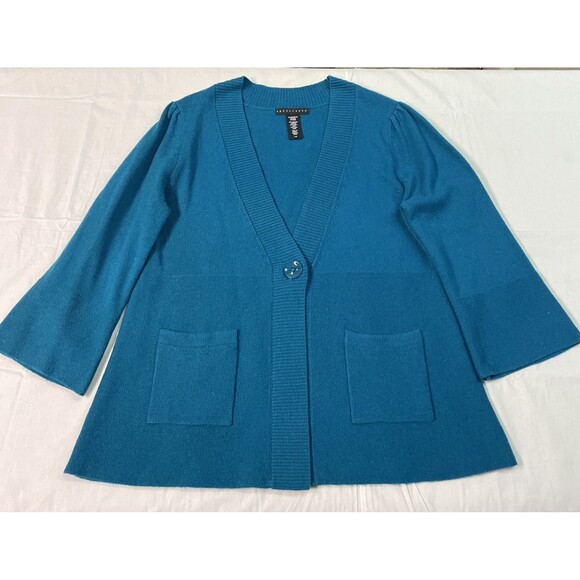 Apostrophe Teal Button Front Cardigan Sweater with Pockets Size Large