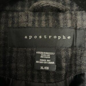 Apostrophe Womens Black Double Breasted Hip Length Wool Blend Trench Coat Sz XL