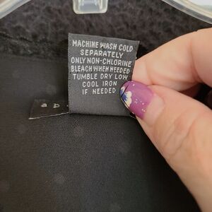 This Apostrophe women's blouse, size 4P, is a stylish, multicolor pullover with a polka dot pattern. It features a basic cut, v-neck, and cap sleeves. Made of 100% polyester, it's perfect for any occasion.