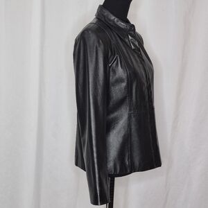 Apostrophe Womens Hidden Button-Front Black Leather Blazer Shirt Jacket - Size 8
