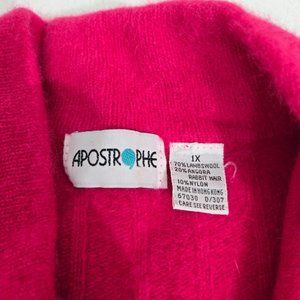 Apostrophe Womens Pink Lambswool Angora Sweater Sz 1X 80s Grannycore Preppy Work