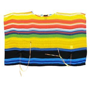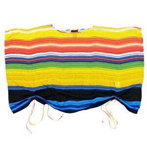 Sheer Brightly Striped Pullover Poncho Blouse Top Apostrophe