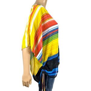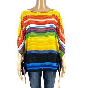 Apostrophe Womens Poncho Blouse Top Shirt Sheer Brightly Striped Pullover Medium