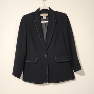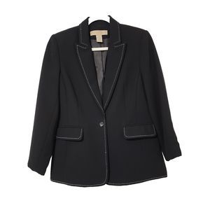 Apostrophe Womens Single Breasted 1-Button Blazer Black White Peak Lapel Size 6