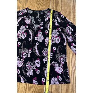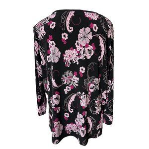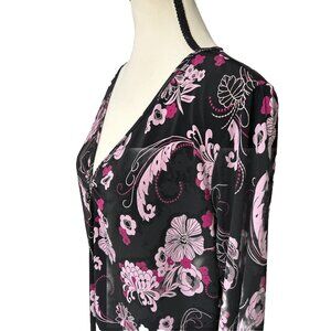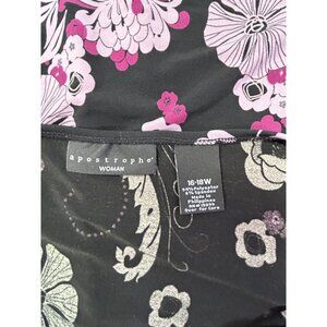Apostrophe Women’s Size 16-18W Floral Blouse Black Pink Liquid Knit B44
