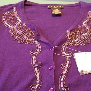 Apostrophe Women's 24-26W Purple Embellished Button Down part Angora Soft
