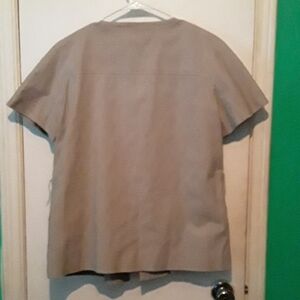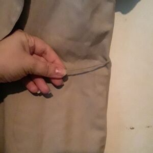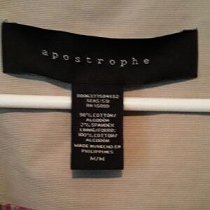 Apostrophe beige blazer. 2 buttons. 2 pockets. Loops for a belt. No belt included. Gently used.