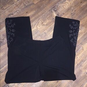 Apostrophe stretch size 16W. Black with beautiful embroidery on sides of the legs. Only worn a few times and are in great condition. I have tons of beautiful curvy items in my closet priced to bundle. The BIGGER the bundle the BIGGER the discount. All reasonable offers accepted