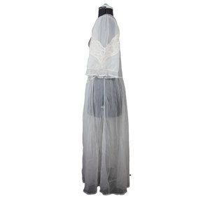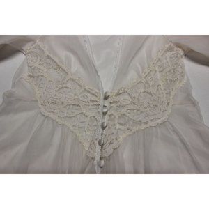 Apostrophe women's vintage puff sleeve sheer lace peignoir boudoir robe