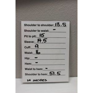No size or materials tag, size given is for guidance ONLY. Please USE measurements!
