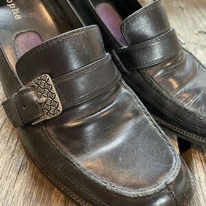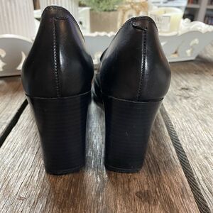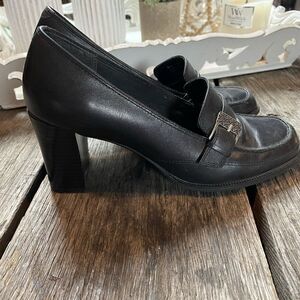 Apostrophe Bina Black Leather Buckle Heels EUC